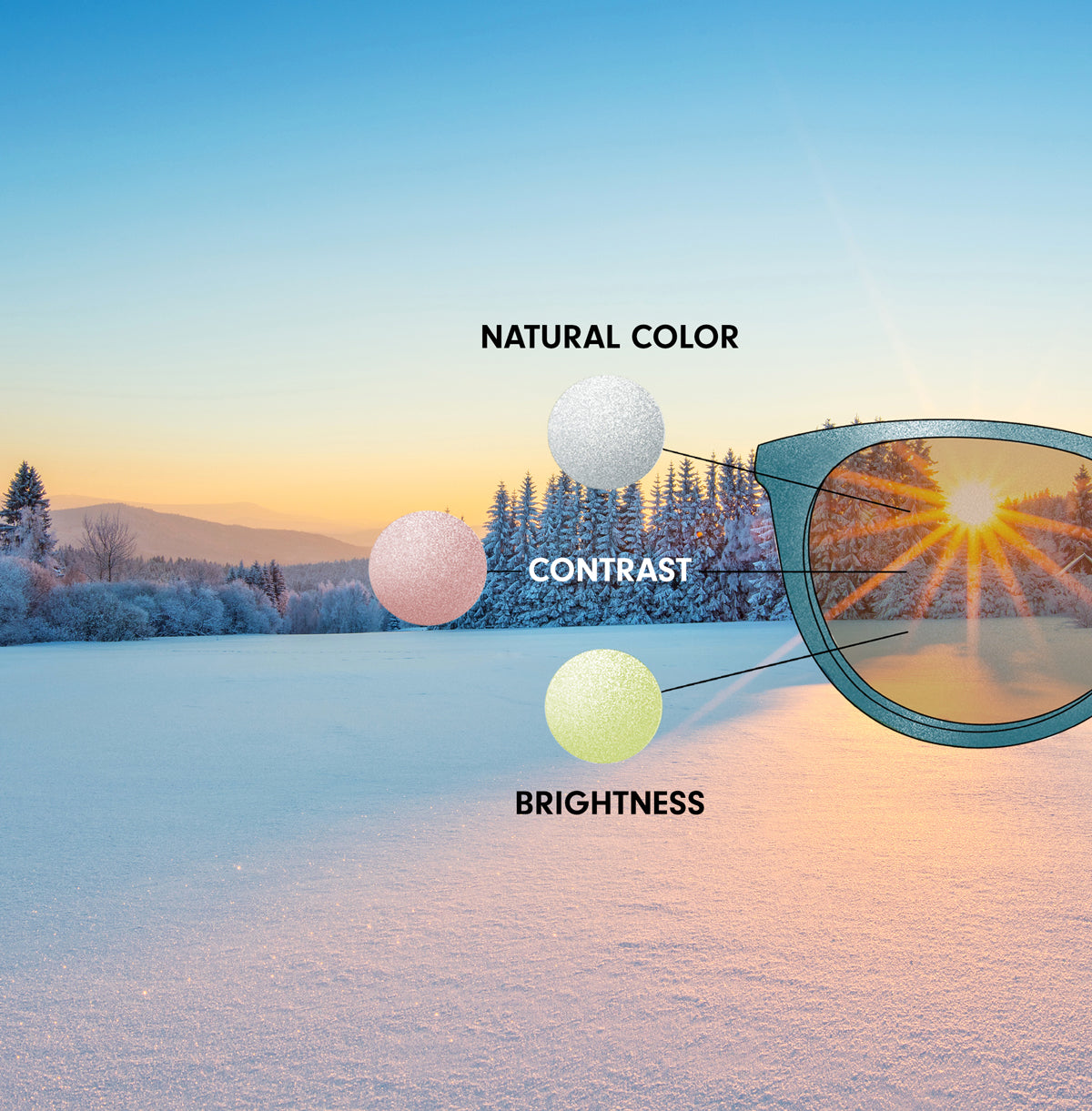 Our lenses help to reduce strong glare and perfectly balance color, contrast, and brightness in higher altitudes, making your surroundings appear more defined and three-dimensional.
